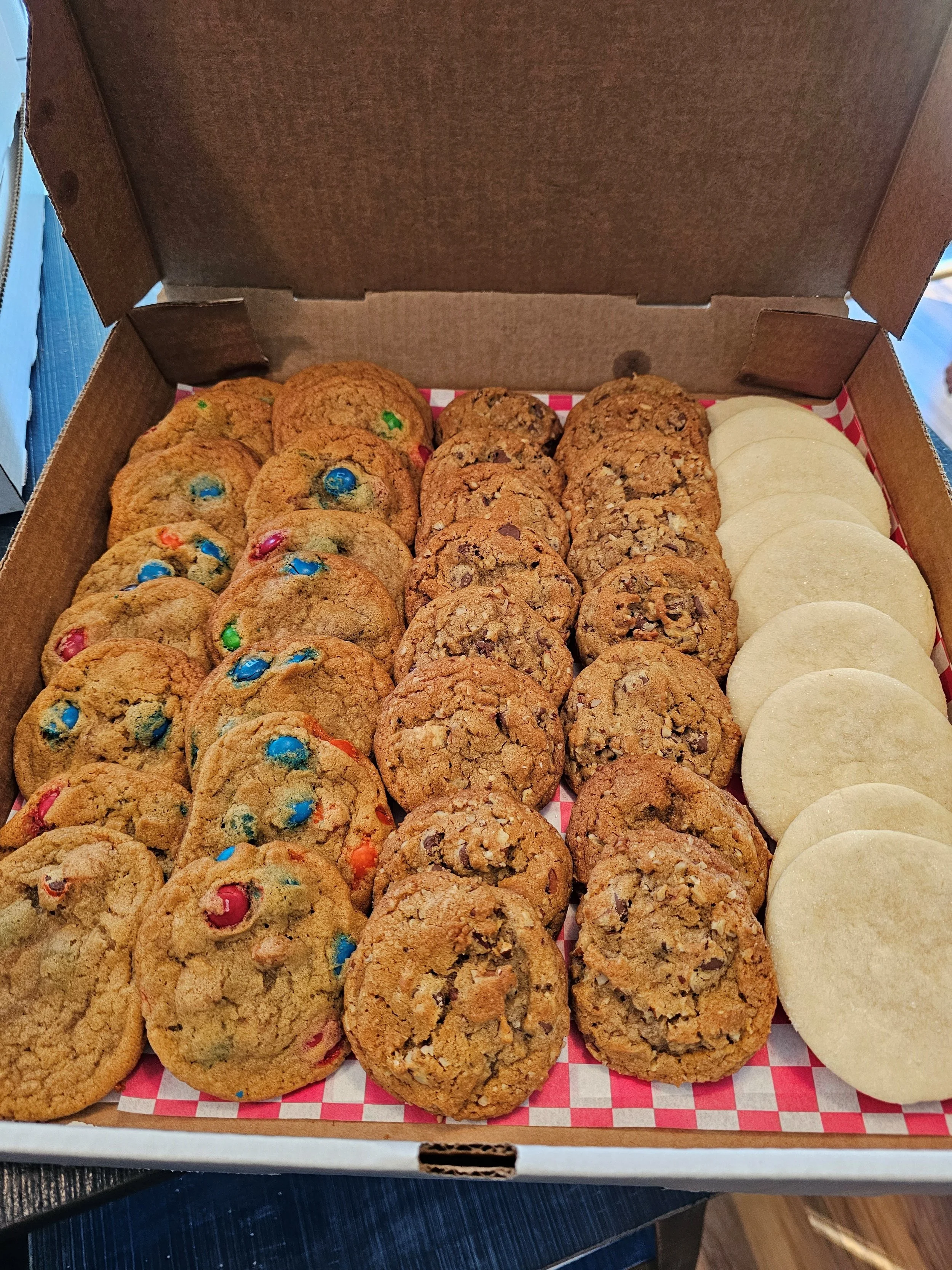 Chocolate Chip, Peanut Butter, Lemon Lavender, Cherry Chocolate Chip, Ginger Snaps, Monster, Butterscotch Oatmeal, Cinnamon Oatmeal, Snickerdoodles, and others upon request